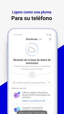 Gracias a su arquitectura basada en la nube, Bitdefender Antivirus Free mantiene su dispositivo ligero y ágil. Al no depender de la descarga y el almacenamiento local de firmas de virus, los análisis se realizan a una velocidad asombrosa, con un impacto prácticamente nulo en el rendimiento general de su Android. Es una protección esencial, siempre activa y actualizada, que trabaja silenciosamente en segundo plano para su tranquilidad.