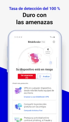 Bitdefender Antivirus ofrece protección galardonada y totalmente gratuita para tu dispositivo Android. Disfruta de la mejor tecnología antivirus sin agotar la batería ni ralentizar tu teléfono. Detecta y bloquea amenazas y malware automáticamente, manteniendo tu seguridad con facilidad y sin configuración. La tranquilidad que necesitas en tu mano.