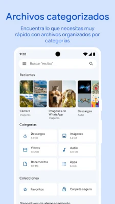 Recupera valioso espacio sin esfuerzo. Files de Google te permite identificar y eliminar archivos duplicados, limpiar cachés de aplicaciones, y deshacerte de esas fotos antiguas de chats que ya no necesitas, todo mientras te muestra claramente el espacio disponible en tu dispositivo, tarjeta SD o unidad USB. Además, nunca más perderás un archivo; su potente motor de búsqueda te ayuda a localizar cualquier elemento al instante, desde tu última descarga hasta ese GIF favorito, permitiéndote incluso ordenar por tamaño para una visión clara de qué consume más.