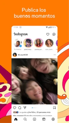 Mantén vivas tus conexiones y celebra la vida en todas sus formas. Con Instagram, puedes compartir instantes fugaces a través de historias y notas que capturan el presente, o crear espacios íntimos con tus Mejores amigos para conversaciones y recuerdos sin filtro. Revive viajes y eventos especiales en tu feed principal, o sumérgete en la creatividad de los reels, vídeos cortos y dinámicos que te invitan a narrar tu mundo con ritmo y estilo. Cada publicación se transforma en una obra única con plantillas exclusivas, música envolvente, stickers divertidos y filtros que realzan tu visión.