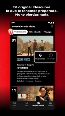 La novedad es una constante en Netflix. Nuestro catálogo se actualiza sin cesar con producciones frescas y originales, permitiéndote siempre encontrar algo nuevo o redescubrir tus favoritos, todo ello de forma fluida en cualquier dispositivo que elijas. Cuanto más exploras y disfrutas, más se adapta Netflix a tus gustos, perfeccionando las recomendaciones para que tu próxima elección sea siempre perfecta, haciendo que tu experiencia de visionado sea única y personalizada.