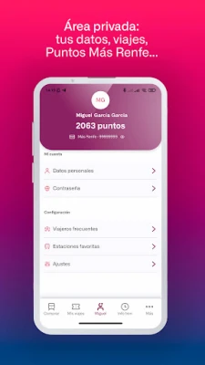 Tu experiencia personalizada es una prioridad para Renfe. Accede a tu perfil para gestionar tus datos personales y los de tus acompañantes de manera intuitiva, simplificando futuras reservas. Un beneficio exclusivo al utilizar Renfe es la total ausencia de gastos de gestión al adquirir tus billetes. Para aprovechar al máximo todas las funciones personalizadas que tenemos para ti, te animamos a registrarte y comenzar a vivir una nueva era en tus desplazamientos ferroviarios.