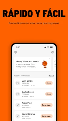 La simplicidad, la velocidad y la tranquilidad definen cada interacción con **Ria Money Transfer**. Con solo unos pocos toques, tus transferencias pueden completarse en minutos, y nuestro sistema permite el seguimiento en tiempo real del progreso de cada envío, brindándote total transparencia desde el inicio hasta la entrega final. Además, la elección del método de entrega se ajusta a las posibilidades del país receptor, garantizando que tu apoyo económico o tus fondos personales lleguen exactamente como y donde se necesitan. Es la experiencia de envío de dinero optimizada para ti.