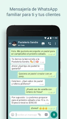 La versatilidad es clave. Puedes usar WhatsApp Business y WhatsApp Messenger simultáneamente en el mismo teléfono, cada uno con su propio número, manteniendo así una distinción clara entre tus interacciones personales y comerciales. Maximiza tu productividad accediendo a tus chats desde el navegador de tu computadora con WhatsApp Web, respondiendo con agilidad a tus clientes. Disfruta de todas las características de WhatsApp en las que ya confías, como el envío de archivos multimedia, llamadas y mensajes a contactos internacionales sin coste adicional*, chats grupales y la entrega de mensajes fuera de línea, todo integrado en una plataforma robusta y orientada a tu éxito empresarial.